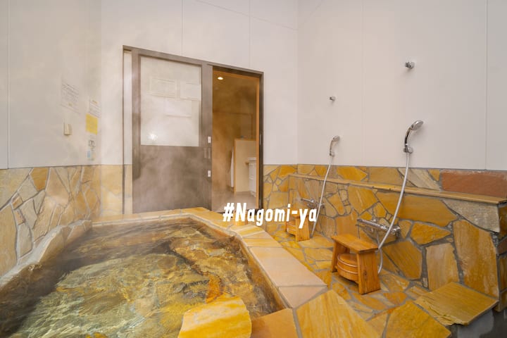 一棟貸しなので、お子様連れでも心配なし! 源泉かけ流し温泉付き、24Hいつでも温泉に入れる! 由布院の繁華街「湯の坪街道」まで徒歩10分!
